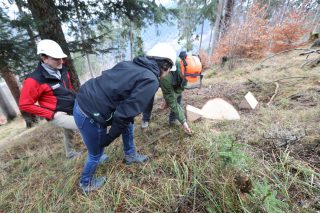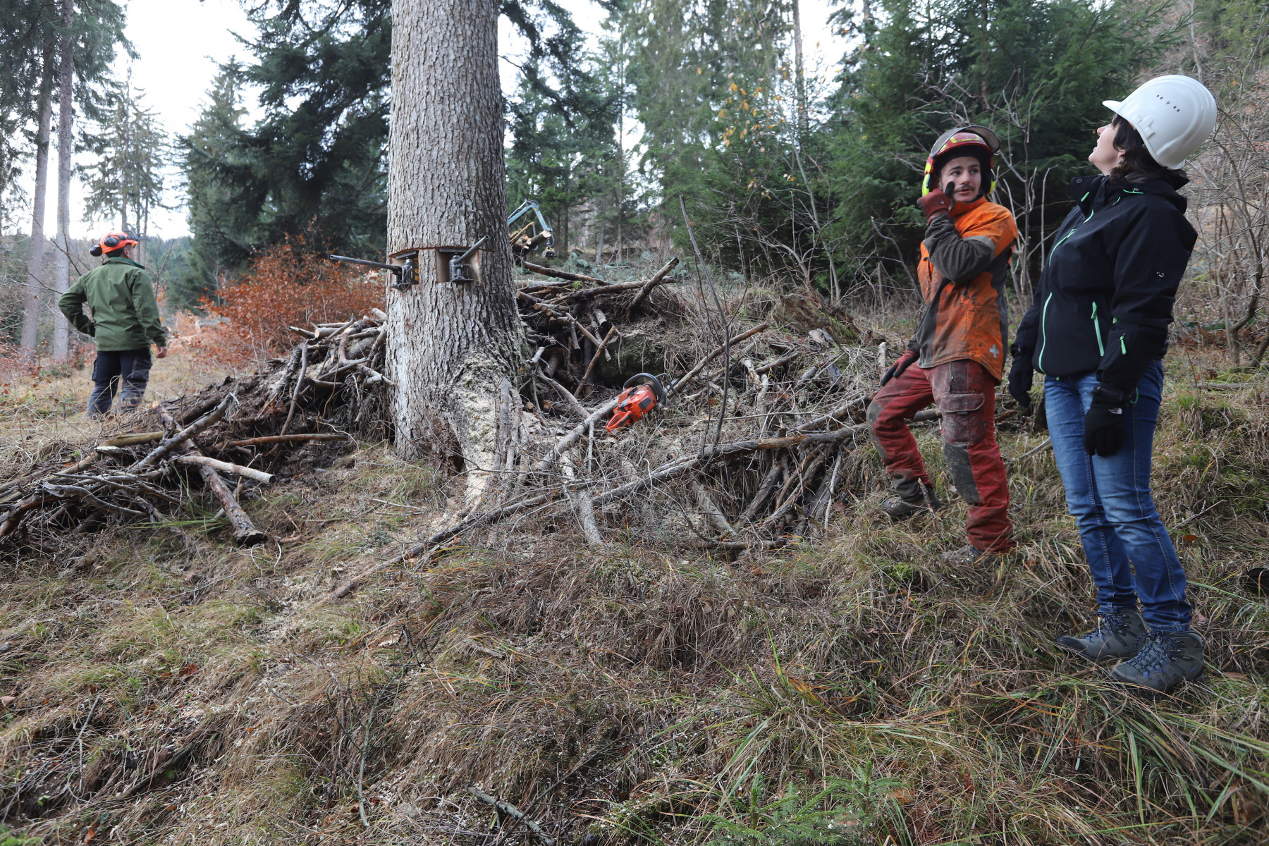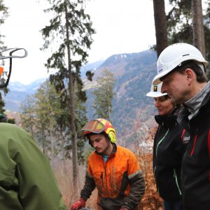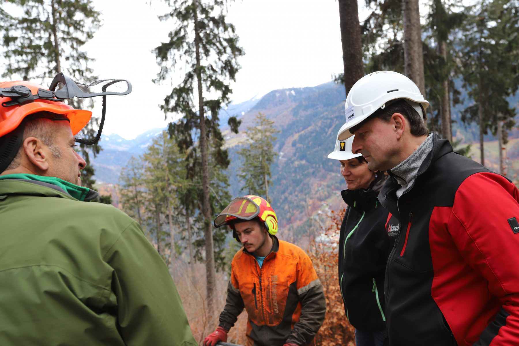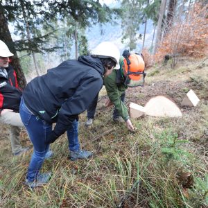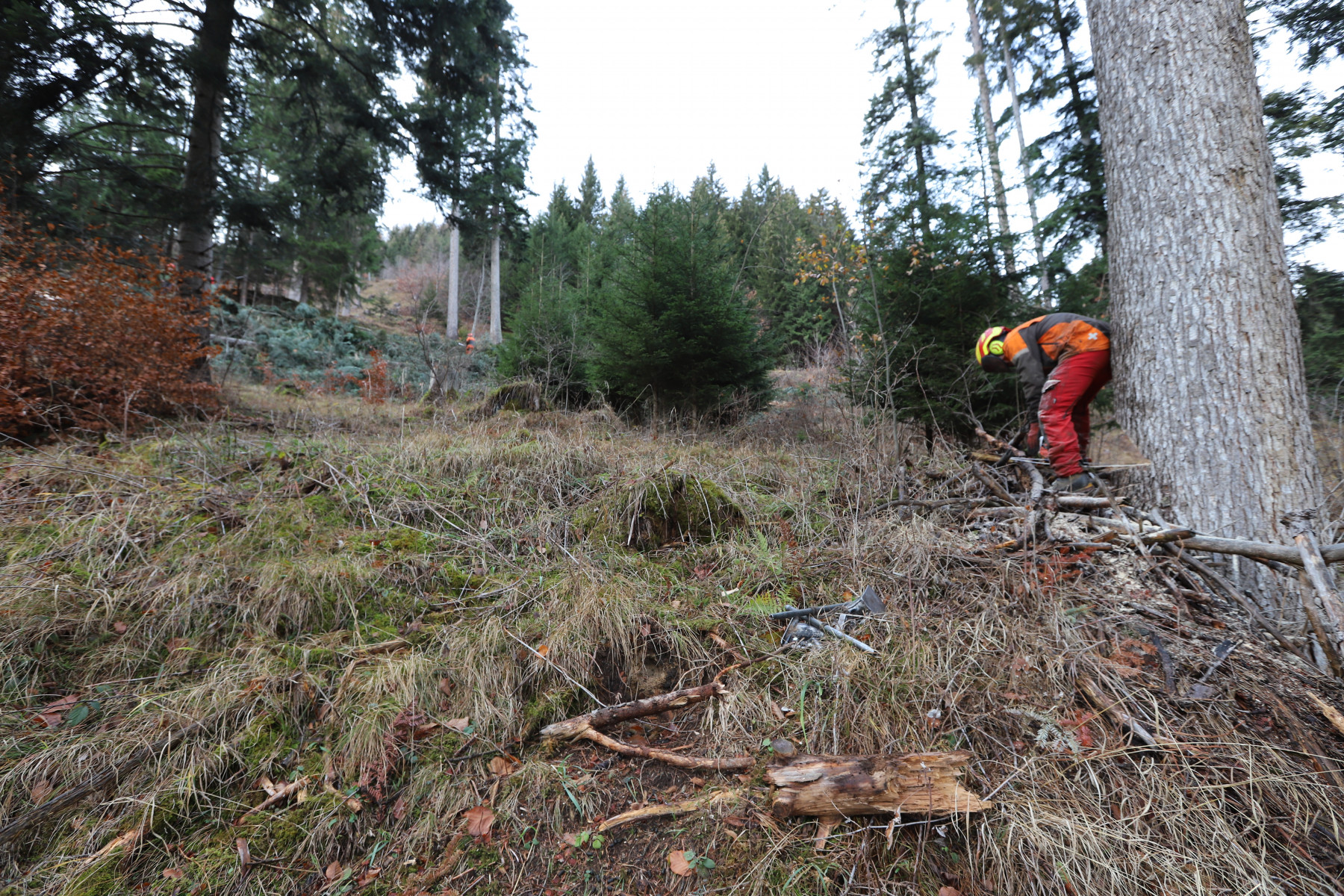 Am Nachmittag des 05. Dezember 2018 durfte die Bauherrschaft dem Team von Revierförster Toni Jäger, Leiter Revier Chur, bei der Holzernte für ihr neues Eigenheim in BERGMOND®HOLZ über die Schultern schauen. Dabei konnte sie auch wichtige Informationen über die Funktion und Aufgaben der Weisstanne im Ökosystem „Wald“ mit grossem Interesse entgegen nehmen.