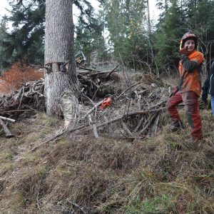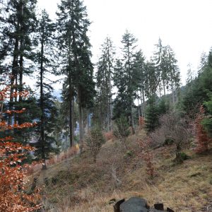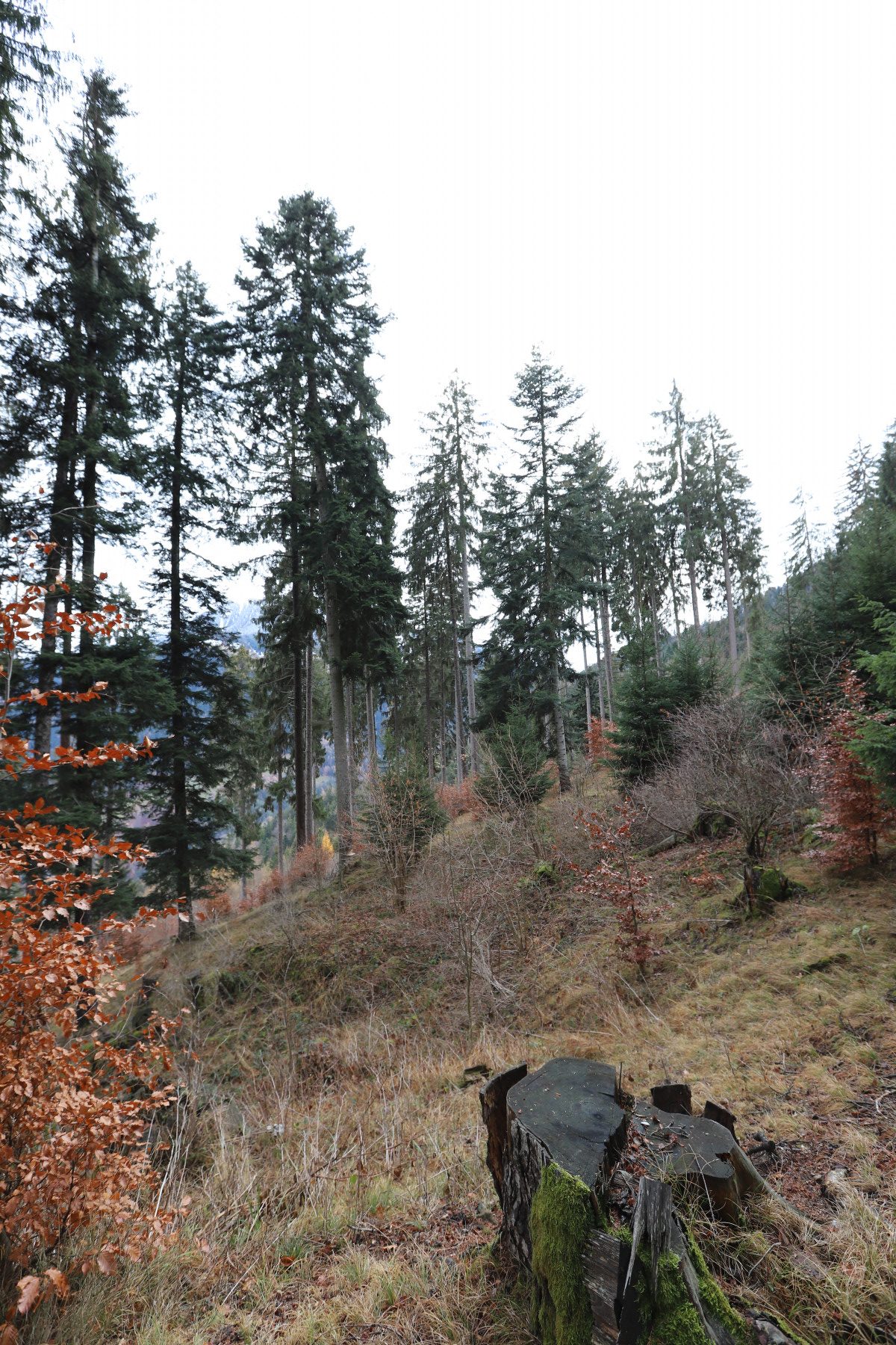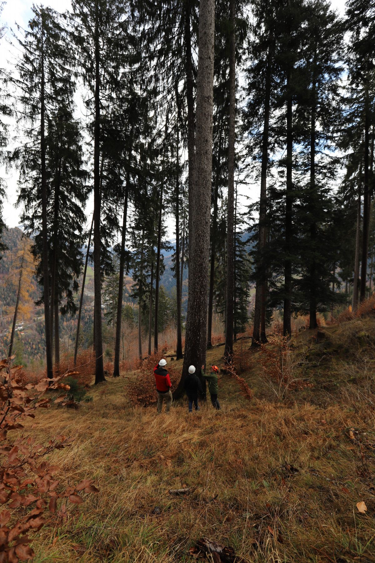 Der Bestand der Weisstanne hat im Bündnerwald einen sehr schweren Stand, so habe er in der Verjüngung von ca. 17% in den 90er Jahren, auf heute ca. 7% stark abgenommen. Obschon der Baum eine sehr wichtige waldbauliche Aufgabe, bedingt durch dessen tiefgründiges Wurzelsystem, der guten Verträglichkeit mit schweren Böden, weniger trockungsanfällig und sturmsicherer als die heimische Fichte, sei der Aufwand für den Schutz und die Aufzucht der Art mit enomren Kosten und Aufwand verbunden. Ein Trost bleibe zumindest für diesen Holzschlag, da der Zeitpunkt für den Vertrieb von „Kranz-Chräss“ bereits vorüber sei, bliebe dem Wild für den Winter ein wahrhafter Dessert übrig und wenn es wie angekündigt nächste Woche Schnee geben sollte, würden die Tiere es bestimmt dankend entgegennehmen, denn Tannennadeln sind für das Rotwild eine Delikatesse sondergleichen…frohe Weihnachten!