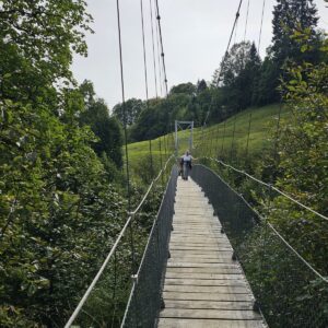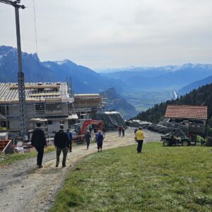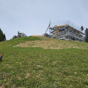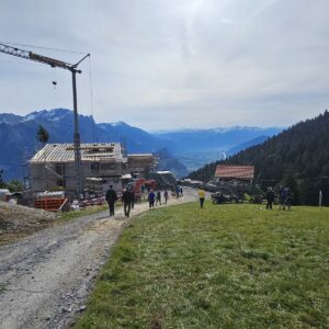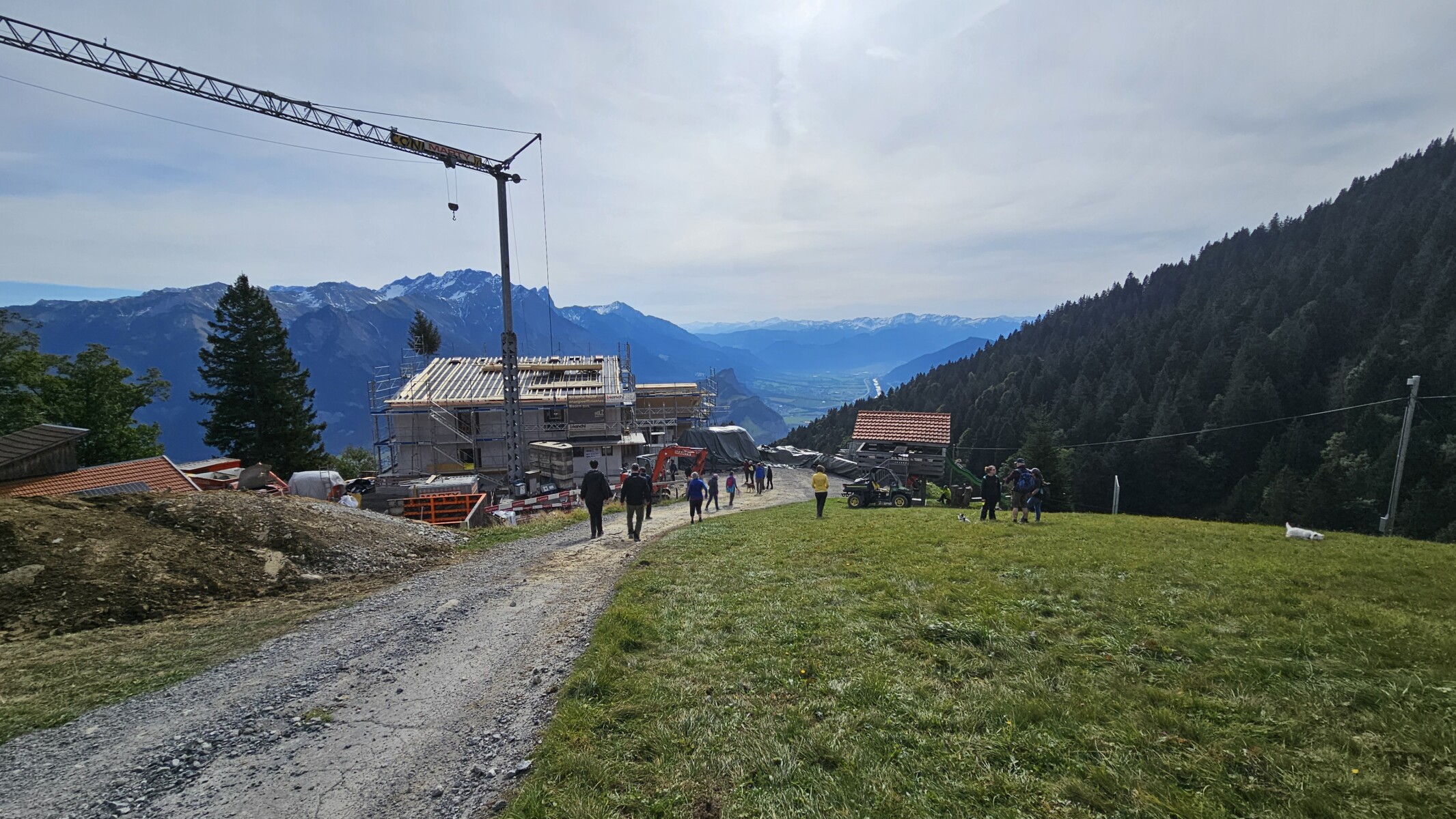 Für den Zmittag  vor Ort ist gesorgt. Nach dem Mittag werden wir den Holzrohbau des Wiederaufbaus unter der Führung von Werner Marty senior besichtigen können. Nach der Besichtigung werden wir die Rundwanderung Richtung Hängebrücke fortsetzten.