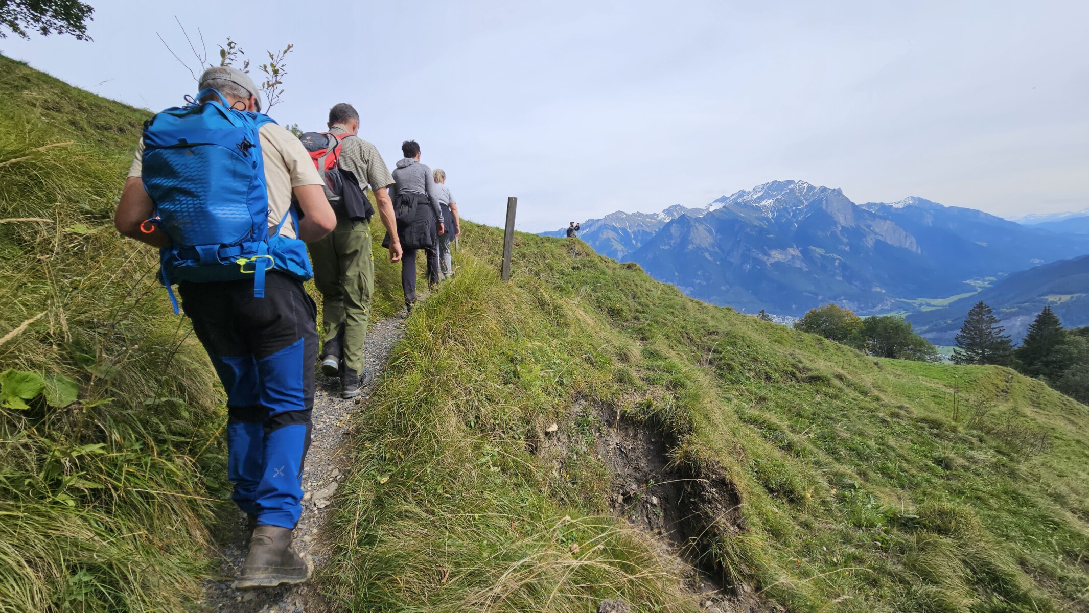 …führt uns in einer Rundwanderung vom Schnappsgrozza via Letzi zum Berggasthaus Gonzen, wo wir im Beizli verköstigt und gestärkt werden, den Holzrohbau des Berggasthauses Gonzen anschauen dürfen, um danach via Oberhuis-Rungg-Neustadel und Maienguet, Richtung Hängebrücke und Gletti wieder retour zu unserem Startpunkt zu spazieren.