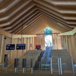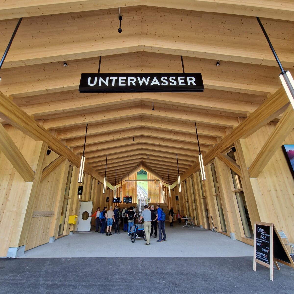 Der diejährige Vereinsanlass knüpfte direkt an die Thematik der diesjährigen Hauptversammlung an. Im vergangenen Jahr durften zwei unserer Fachbetriebe BERGMOND®HOLZ für den eindrücklichen Neubau am Talfuss in Unterwasser liefern und montieren.Wir haben die Gelegenheit dieses Jahr genutzt, euch an unserem Treffen, eine gemeinsame Besichtigung des Bahnhofes Unterwasser mit einer im Führung im Gipfelrestaurant Chäserrugg, zu präsentieren.