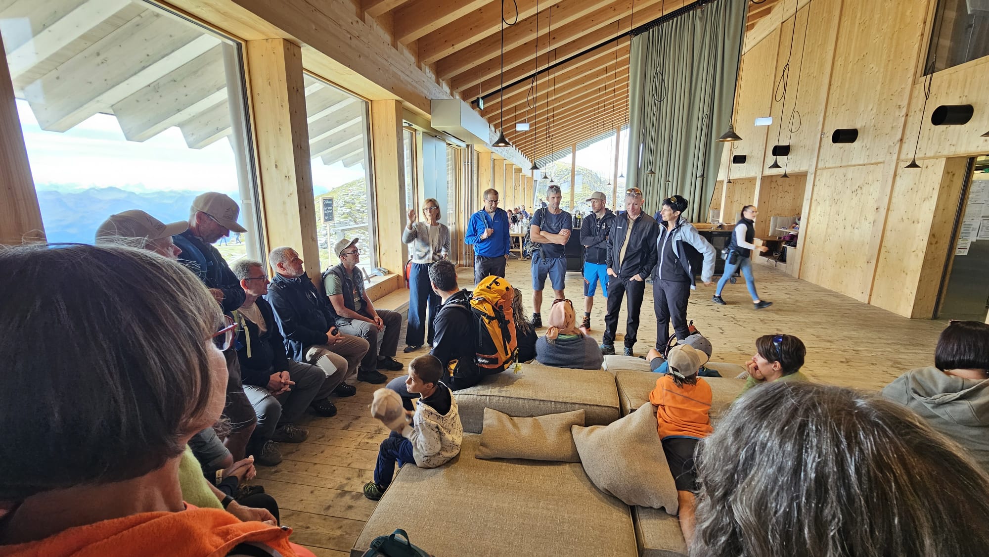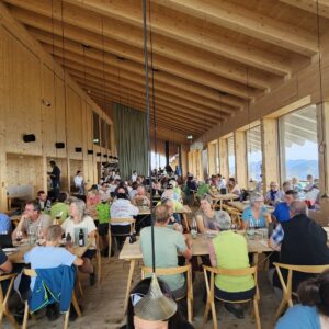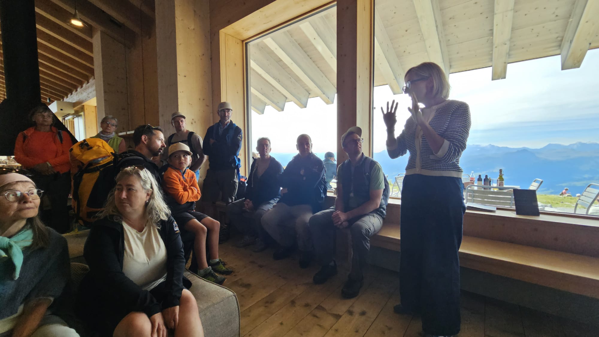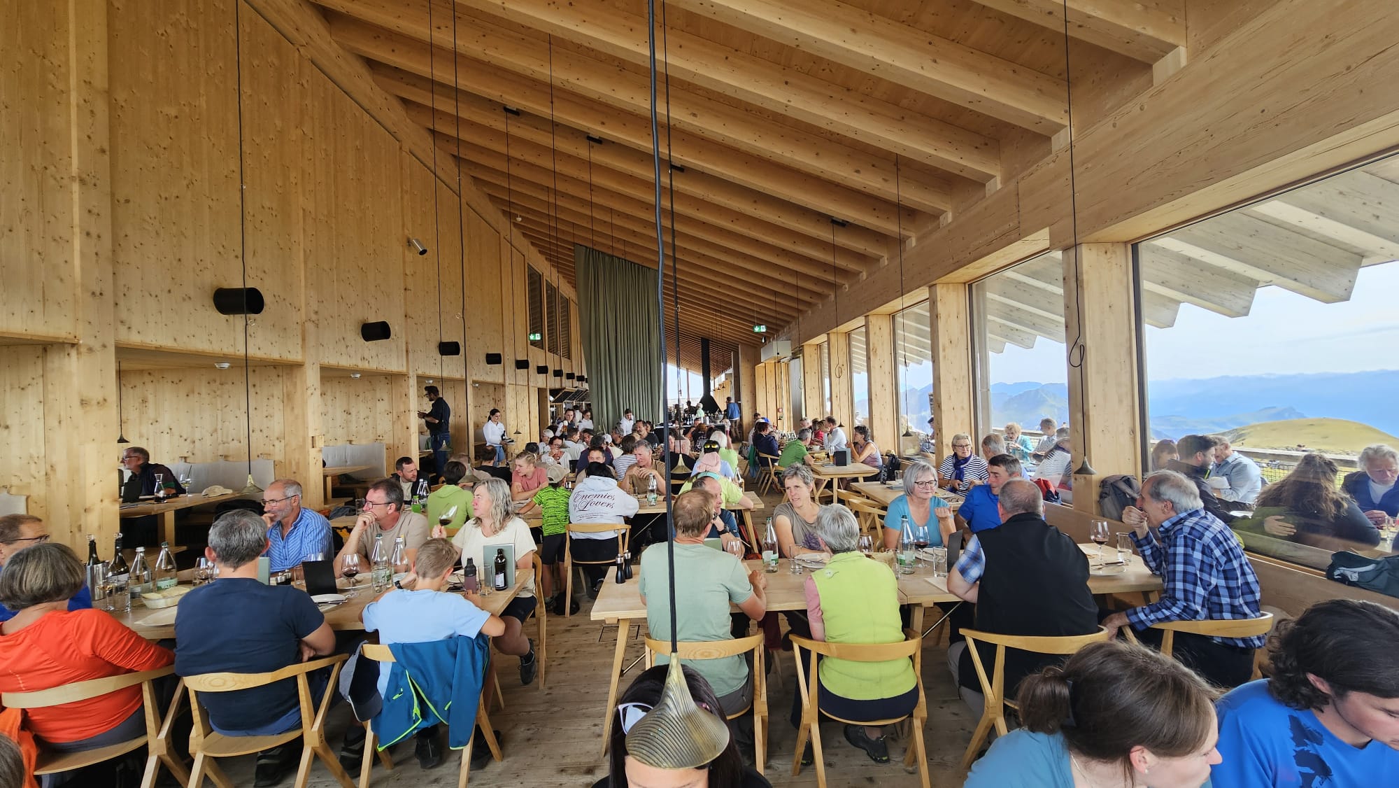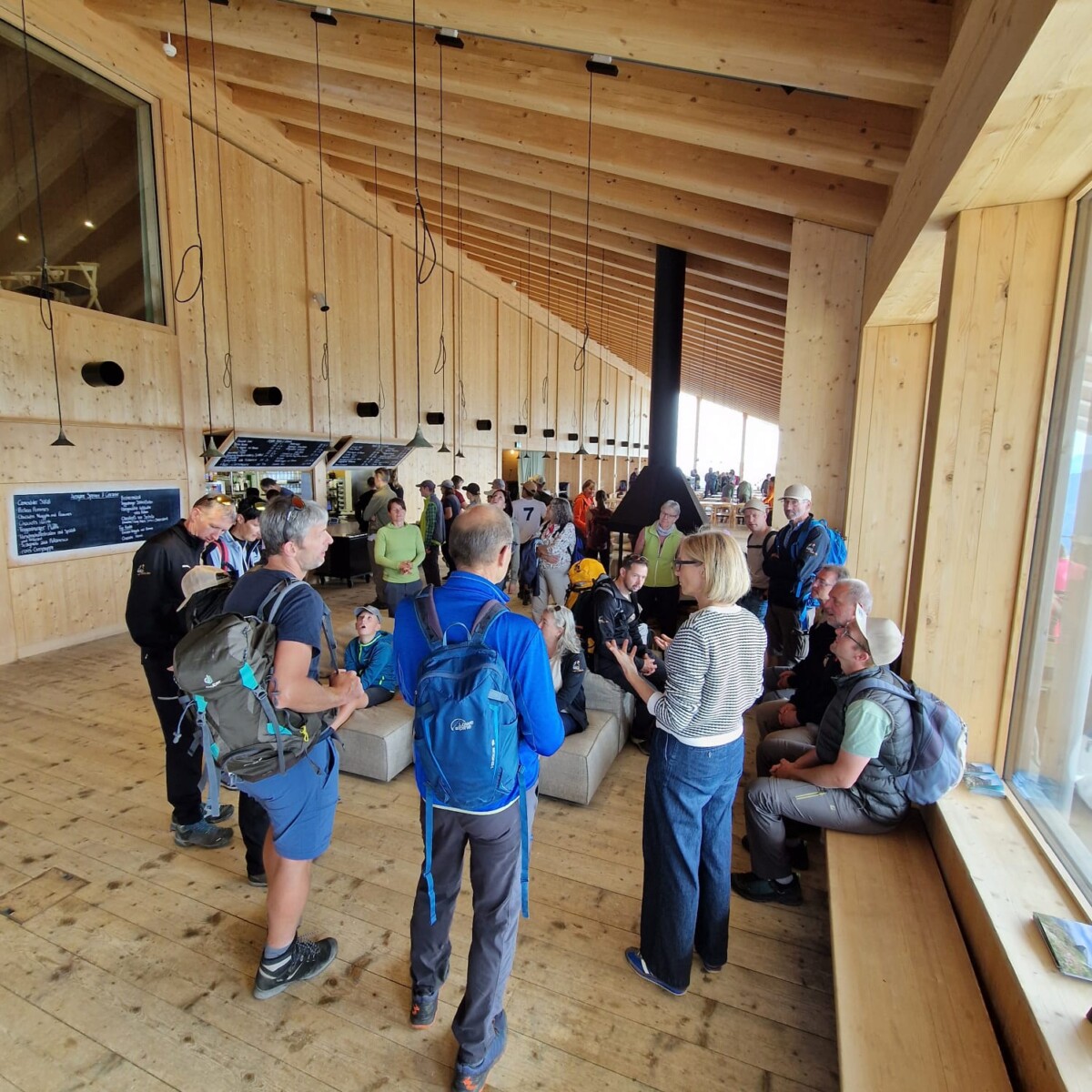 Reto Hürlimann (Revierförster Obertoggenburg) und unser Präsident, haben uns am Fusse der Chäserruggbahn um 10Uhr , begrüsst und in den Tag einführen. Gemeinsam sind wir nach der Besichtigung mit dem Bähnli und der Seilbahn zum 2262m.ü.M gelegenen Bergrestaurant im Chäserrugg gefahren, um das imposante Holzgebäude der Stararchitekten Herzog de Meuron unter fachfrauischer Führung zu bestaunen. Nochmals herzlichen Dank Mélanie Eppenberger!