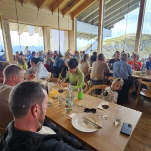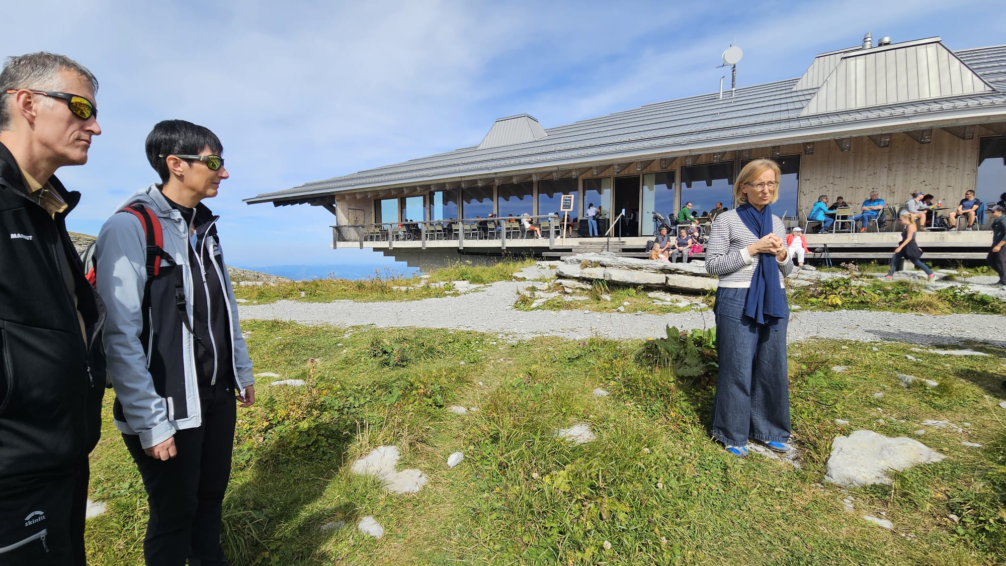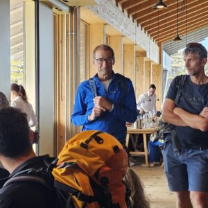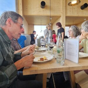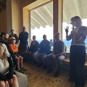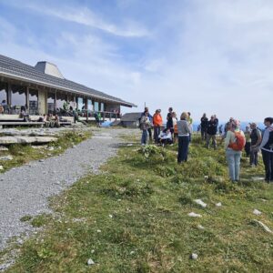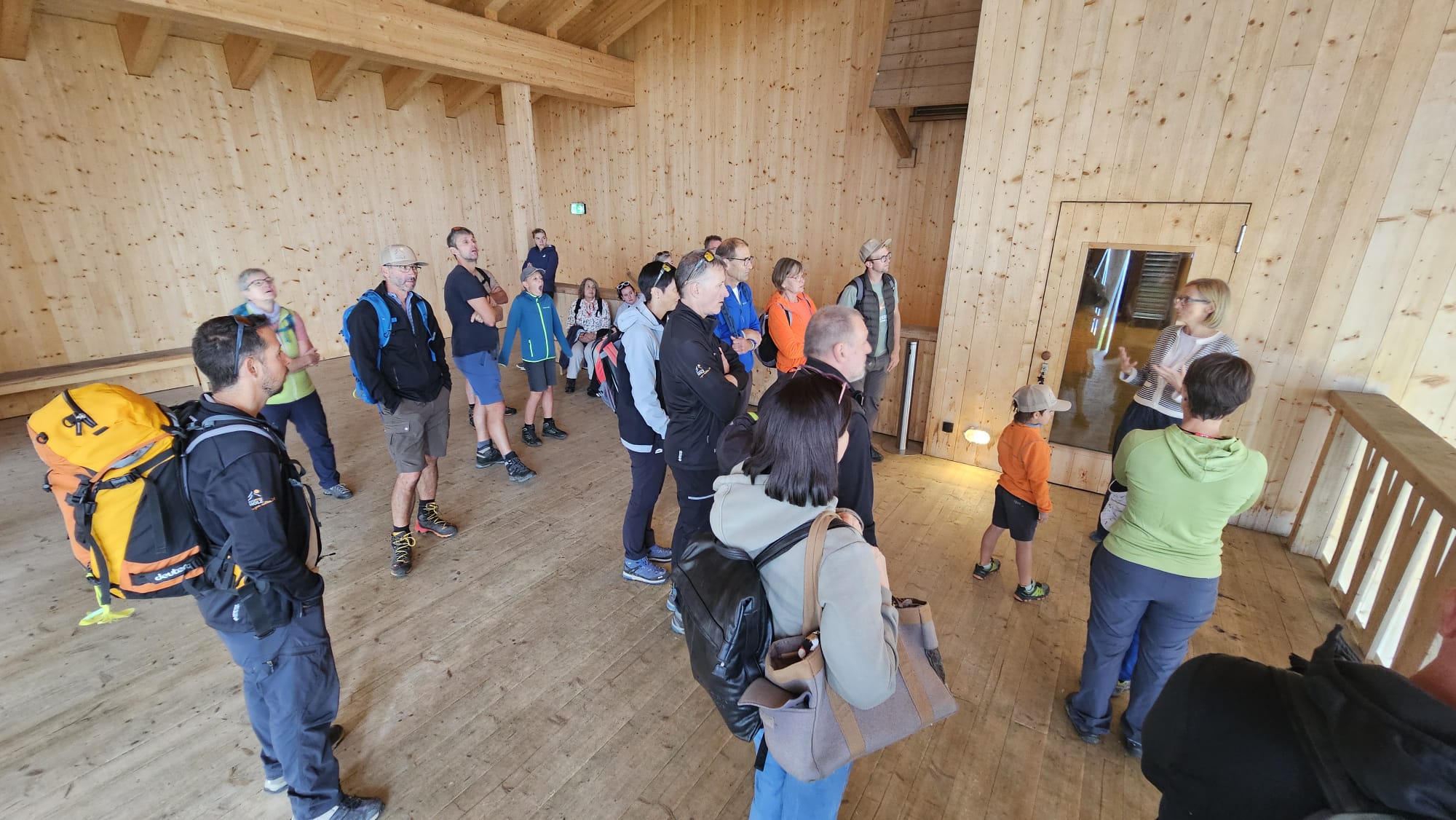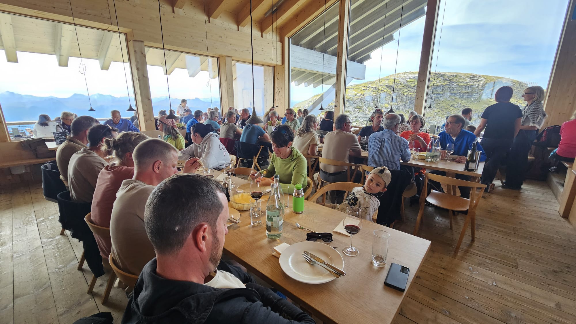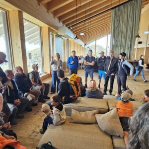 Reto Hürlimann (Revierförster Obertoggenburg) und unser Präsident, haben uns am Fusse der Chäserruggbahn um 10Uhr , begrüsst und in den Tag einführen. Gemeinsam sind wir nach der Besichtigung mit dem Bähnli und der Seilbahn zum 2262m.ü.M gelegenen Bergrestaurant im Chäserrugg gefahren, um das imposante Holzgebäude der Stararchitekten Herzog de Meuron unter fachfrauischer Führung zu bestaunen. Nochmals herzlichen Dank Mélanie Eppenberger!