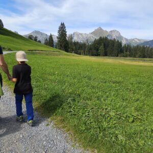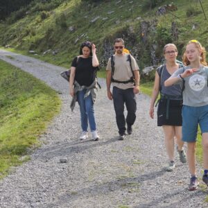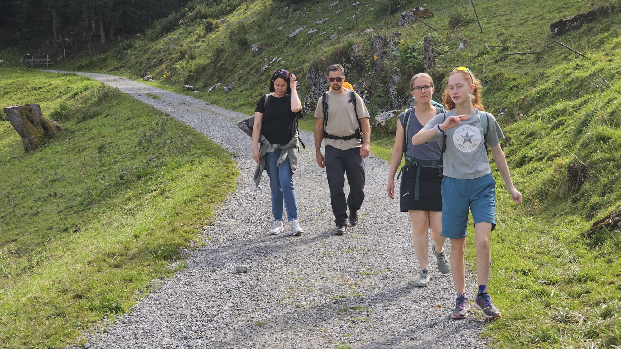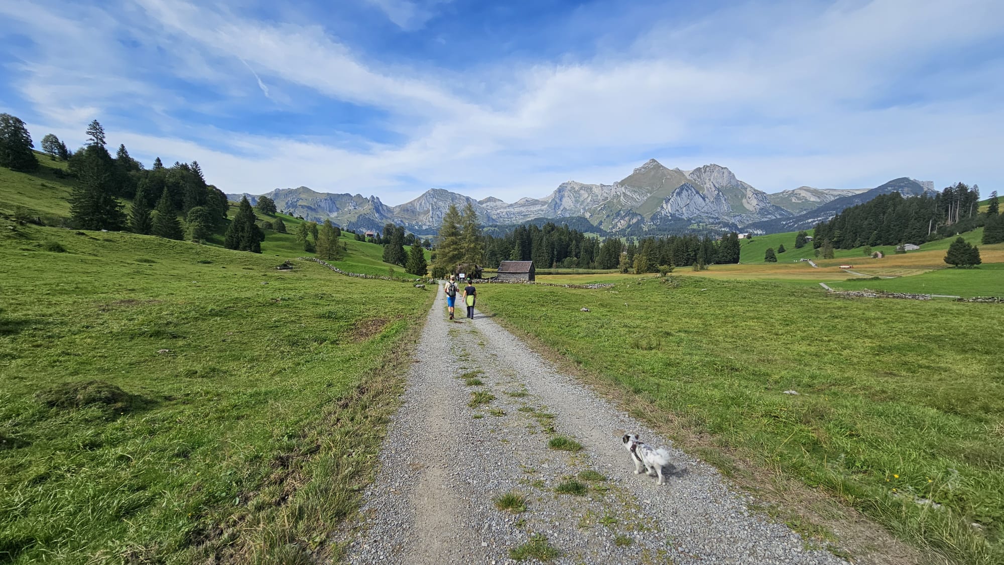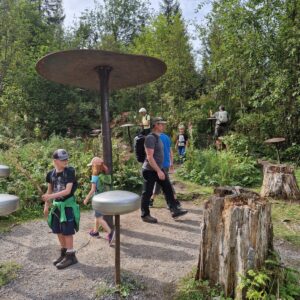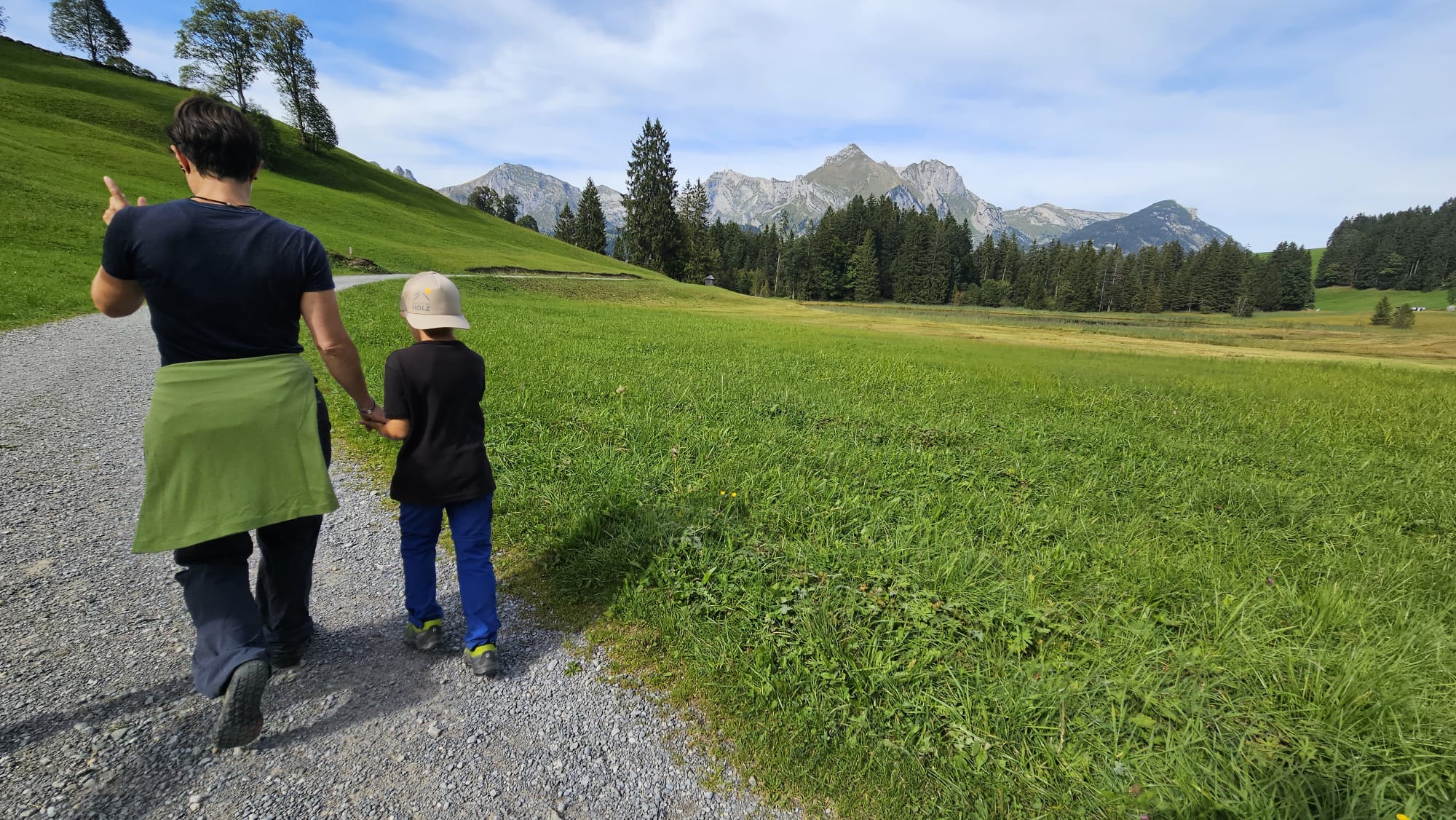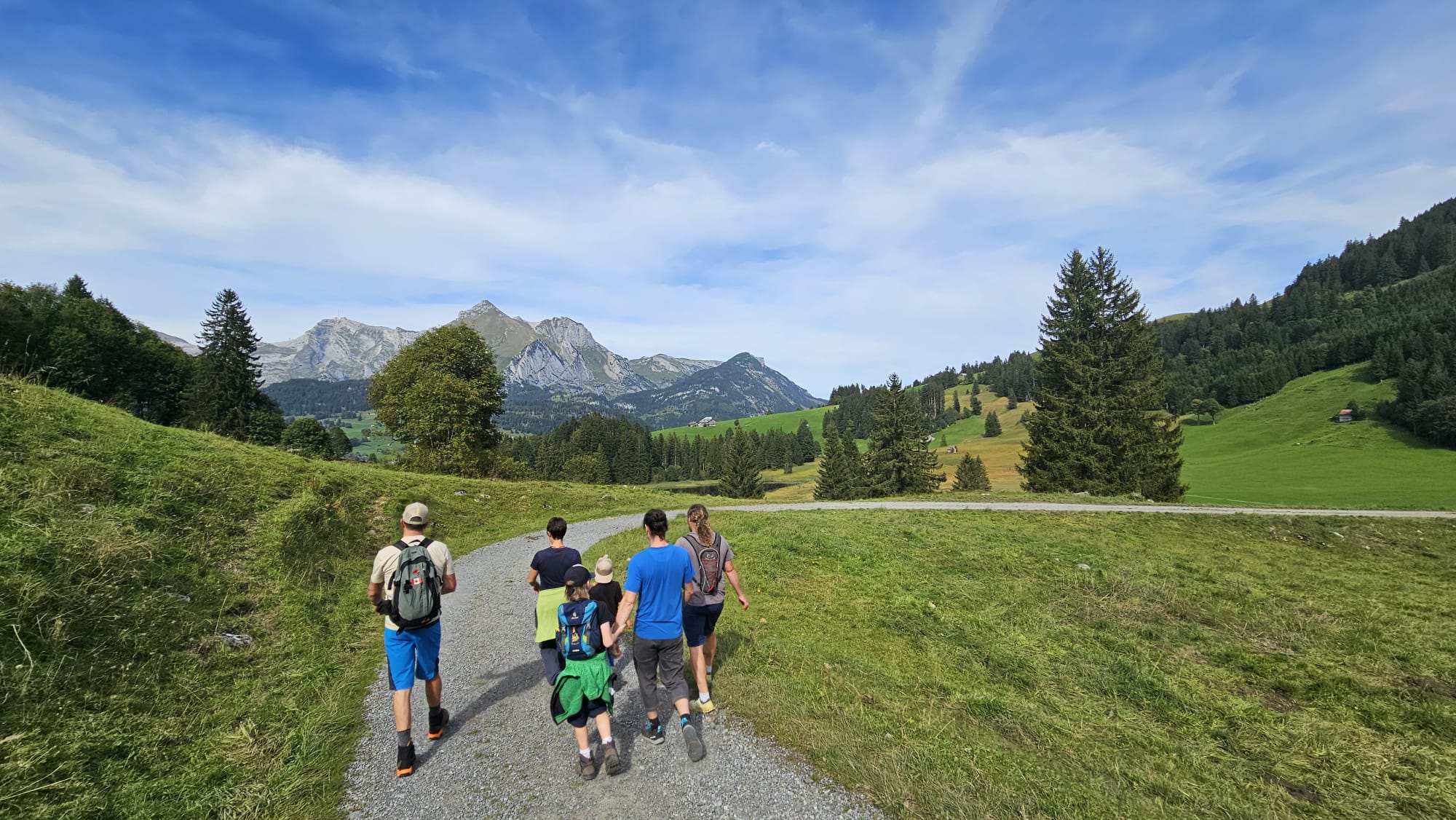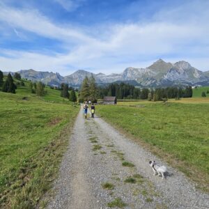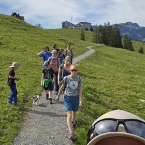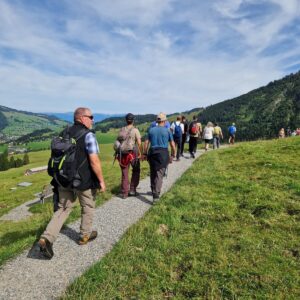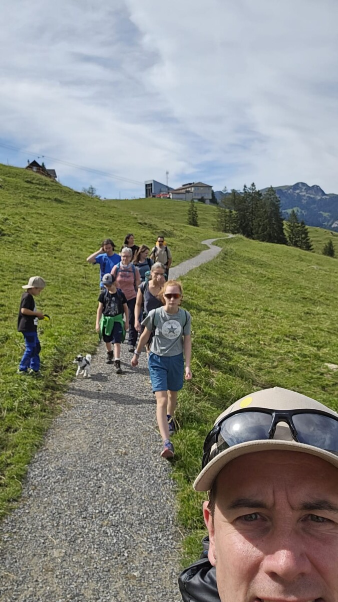 Gemeinsam fuhren wir mit der Chäserruggbahn zur Mittelstation, von wo aus wir zu Fuss via Klangweg Richtung Klanghaus Richtung zum Fotoshooting wanderten.