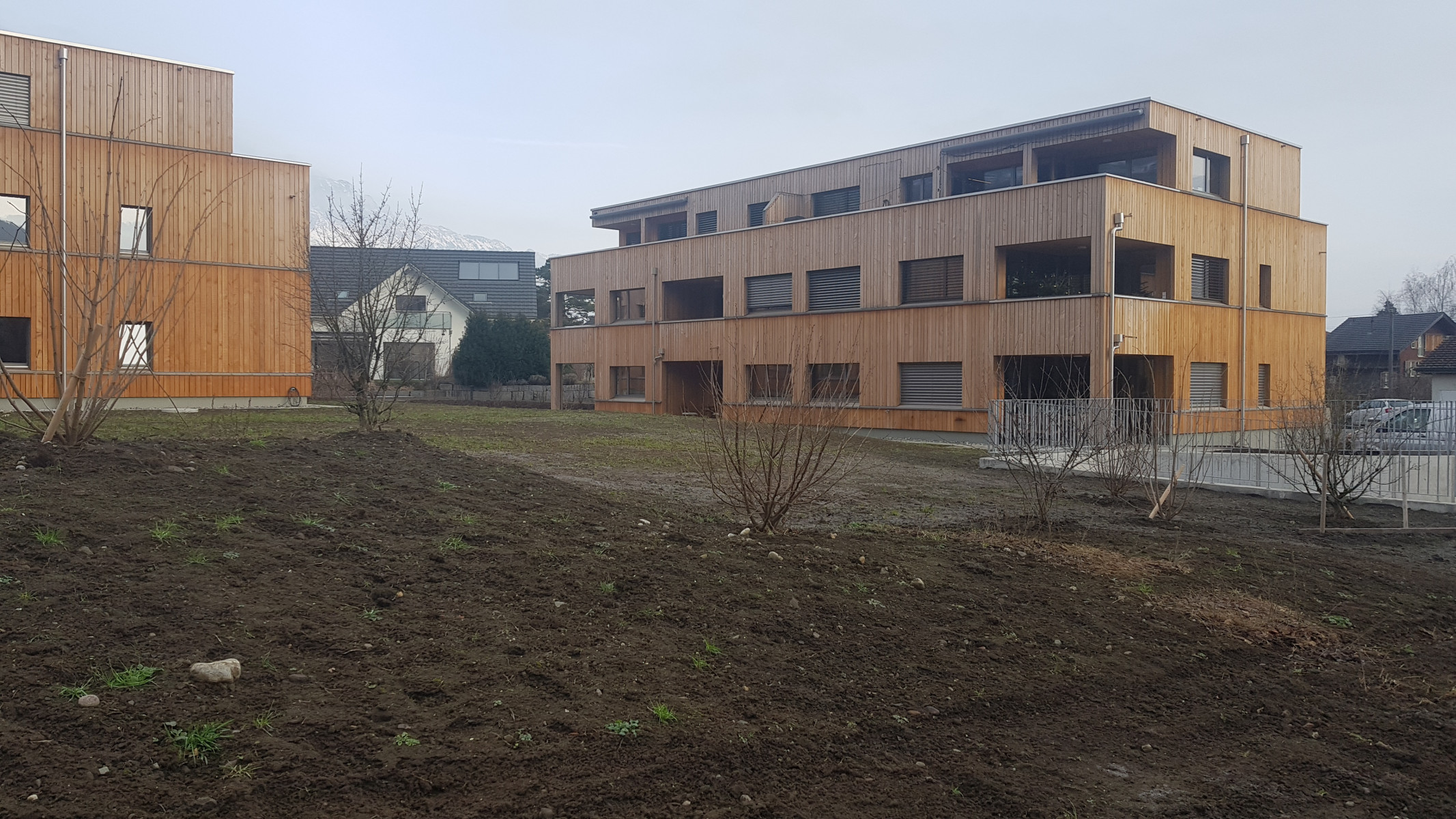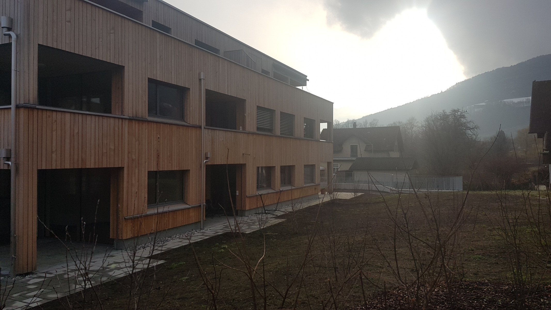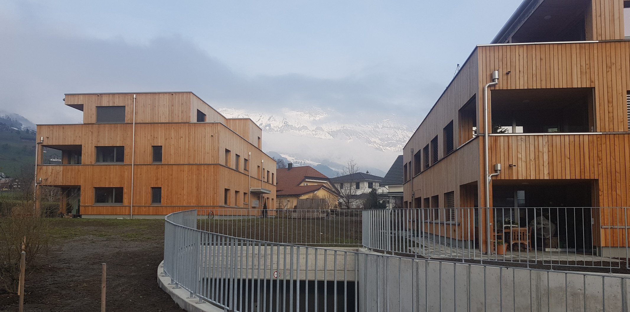 Auch wurde das gesammte Konstruktionsholz für die Aussen-, Innenwände und Geschossdecken der beiden Gebäude aus dem Grabser Wald bezogen.