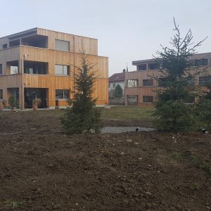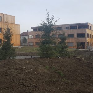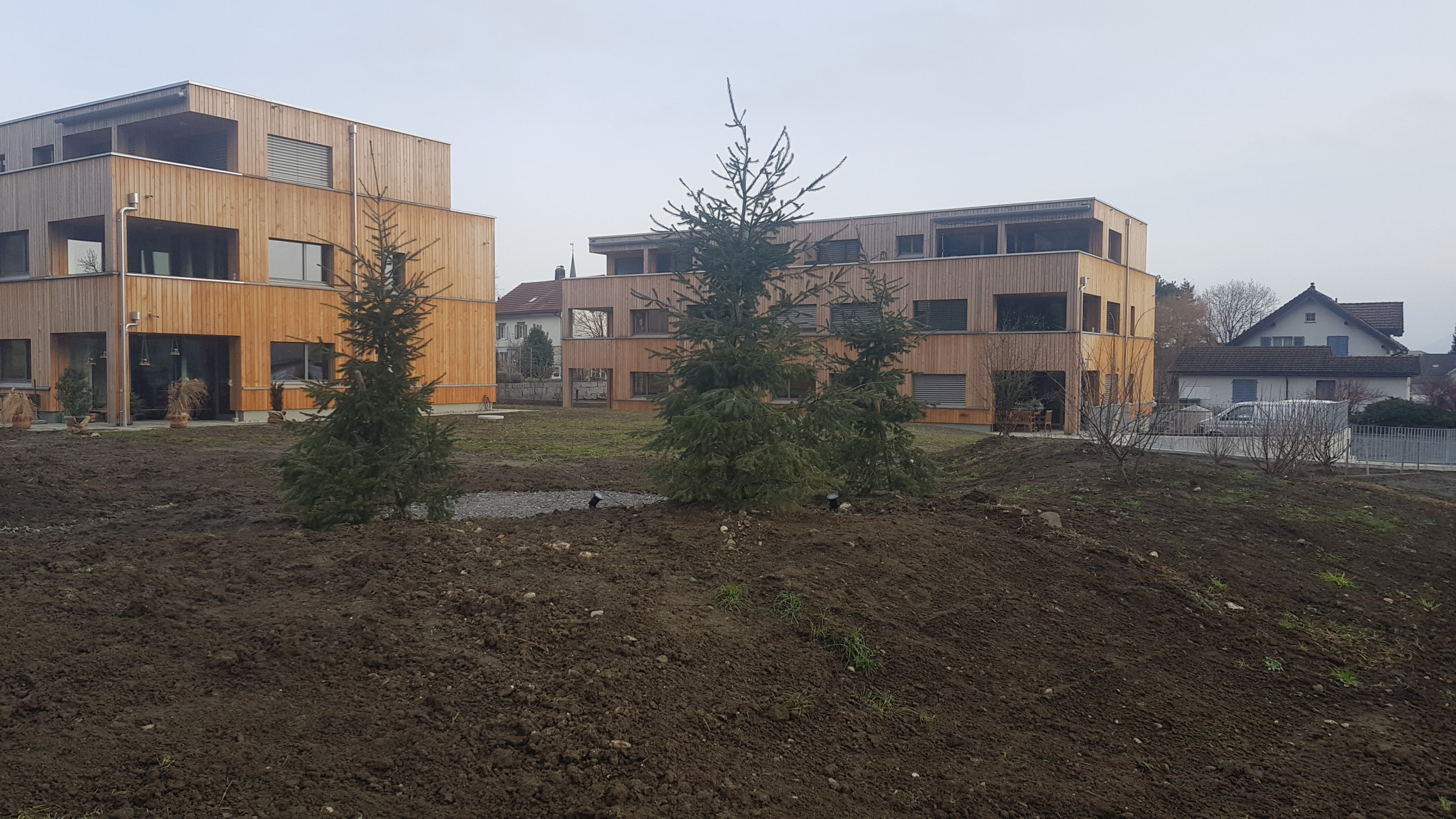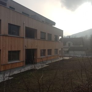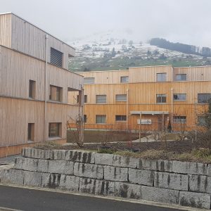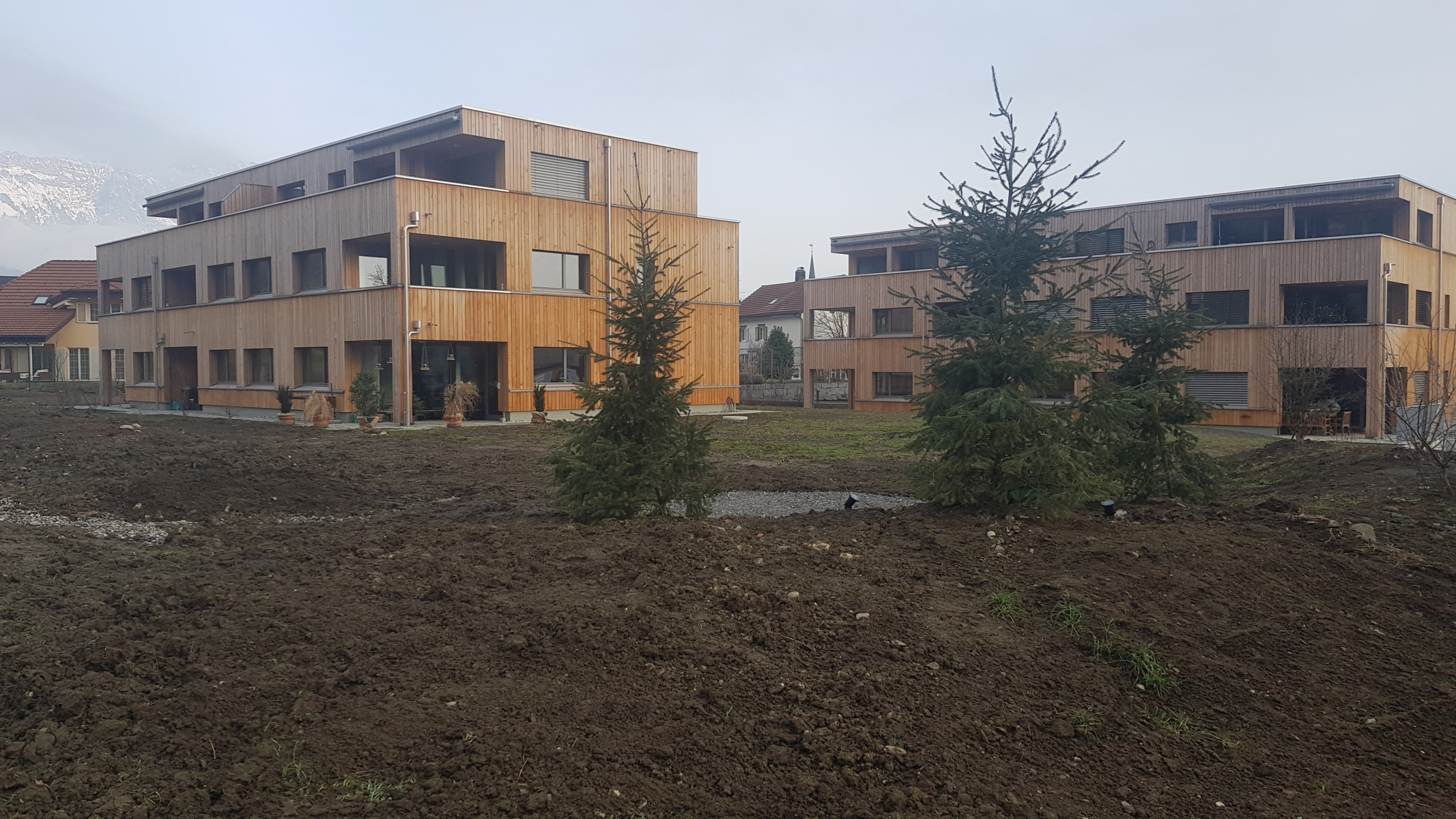 Auch wurde das gesammte Konstruktionsholz für die Aussen-, Innenwände und Geschossdecken der beiden Gebäude aus dem Grabser Wald bezogen.